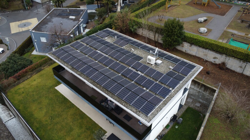 Impianto su tetto piano da 22,3 kWp con 49 moduli, realizzato con AIL per un progetto efficiente, sostenibile e perfettamente integrato nell’architettura.
