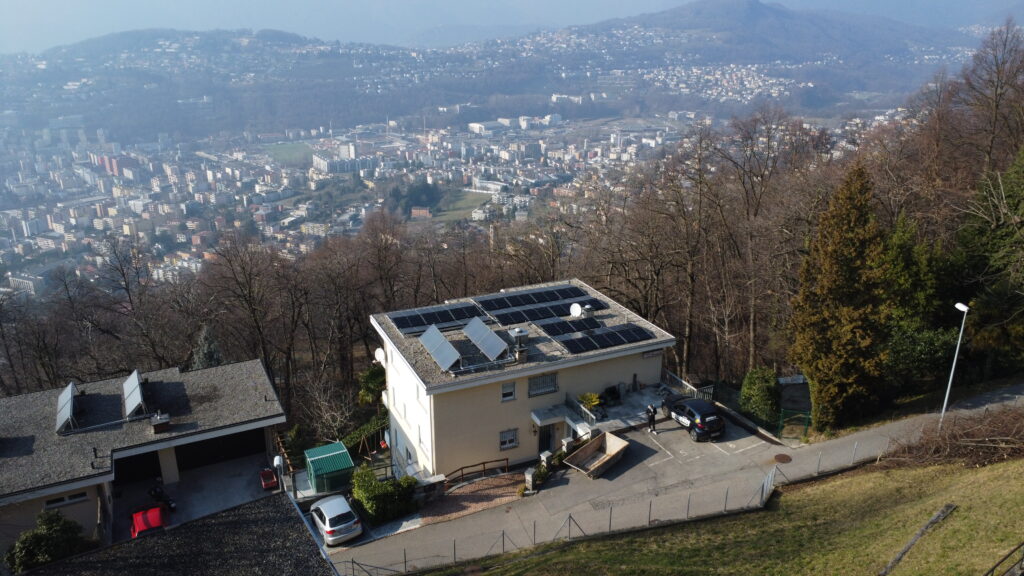 Impianto annesso su tetto piano da 15,98 kWp con 34 moduli, dotato di RCP fisica per consentire a tutti gli inquilini di sfruttare l’energia fotovoltaica.
